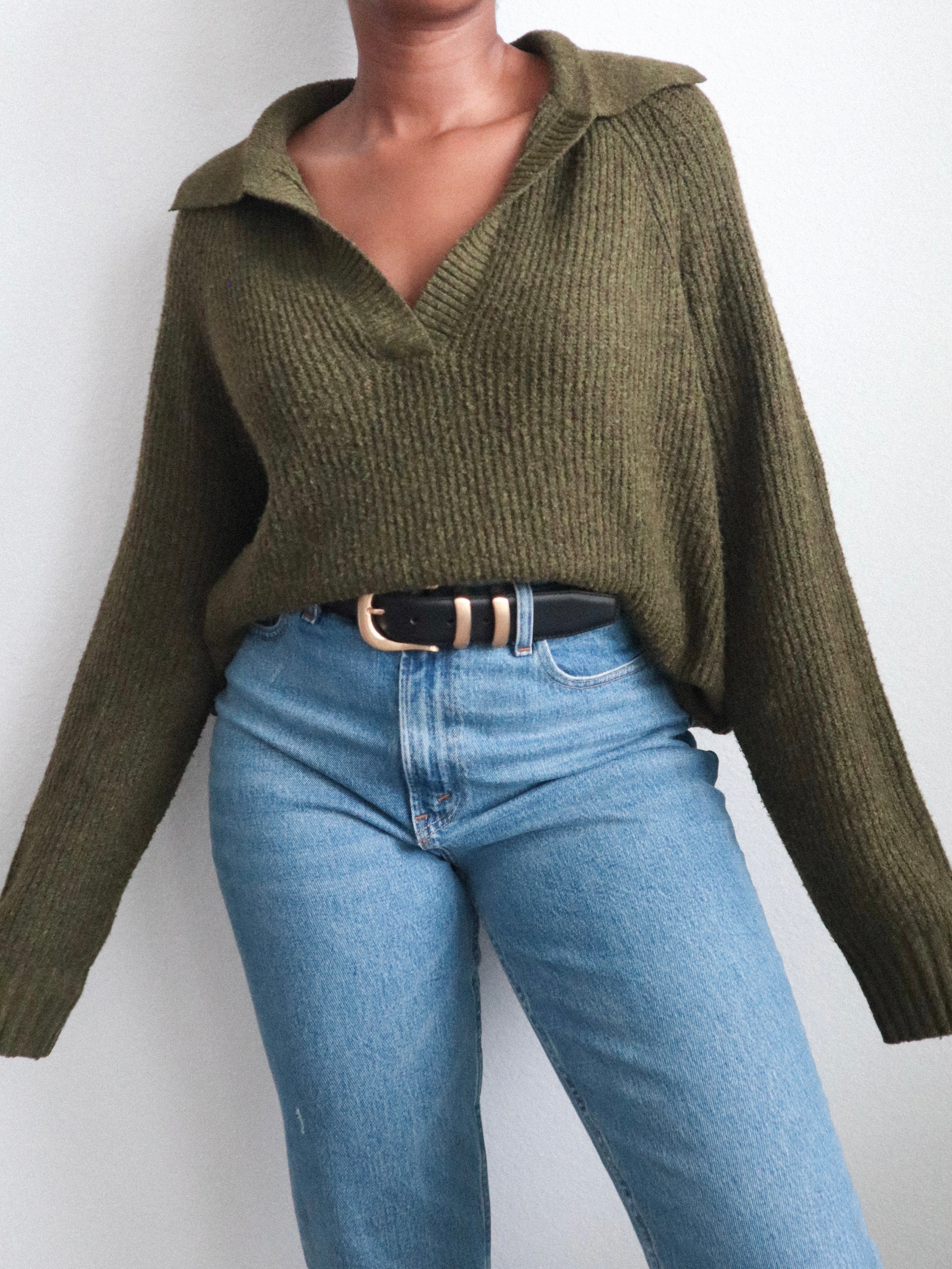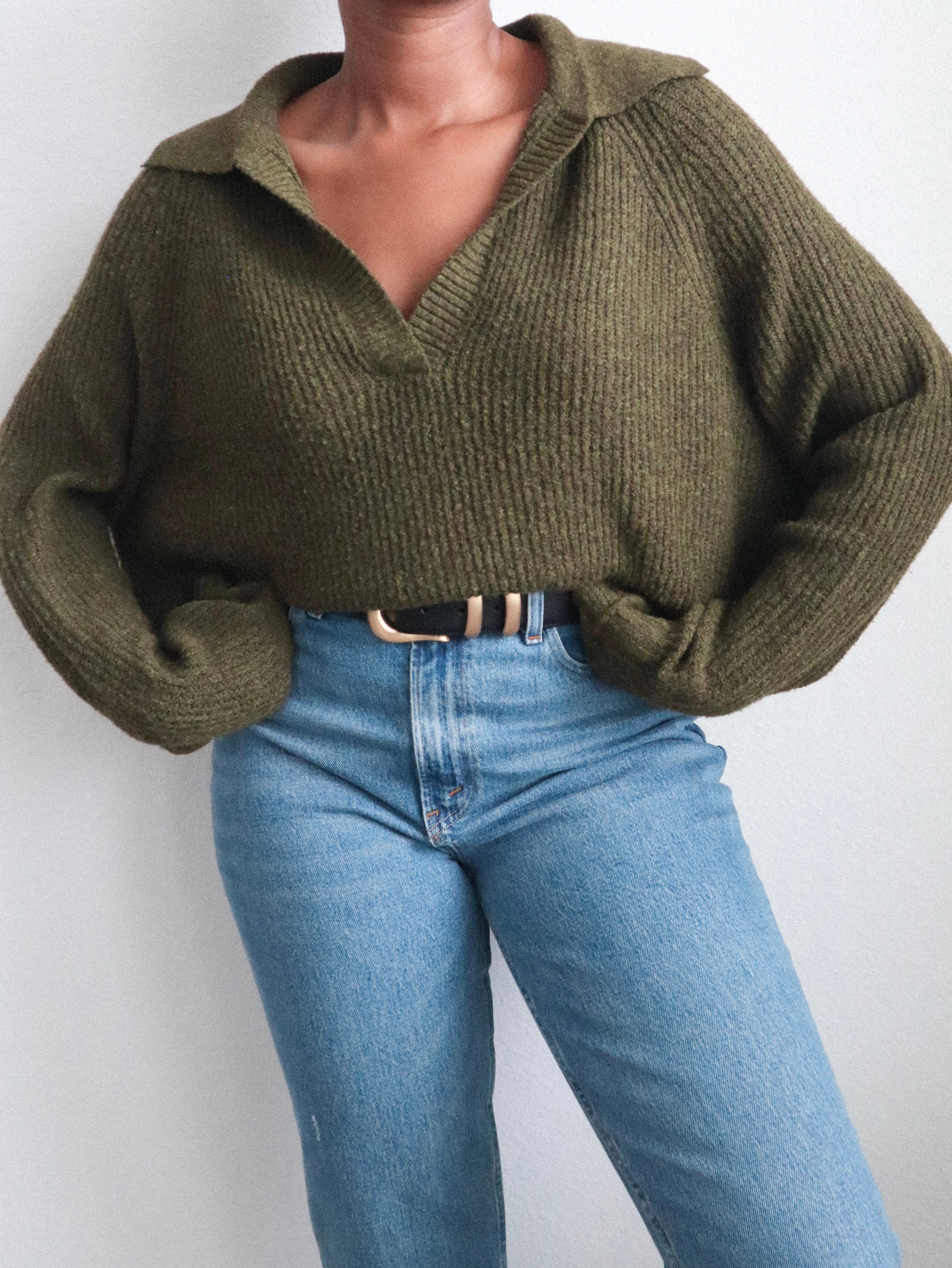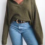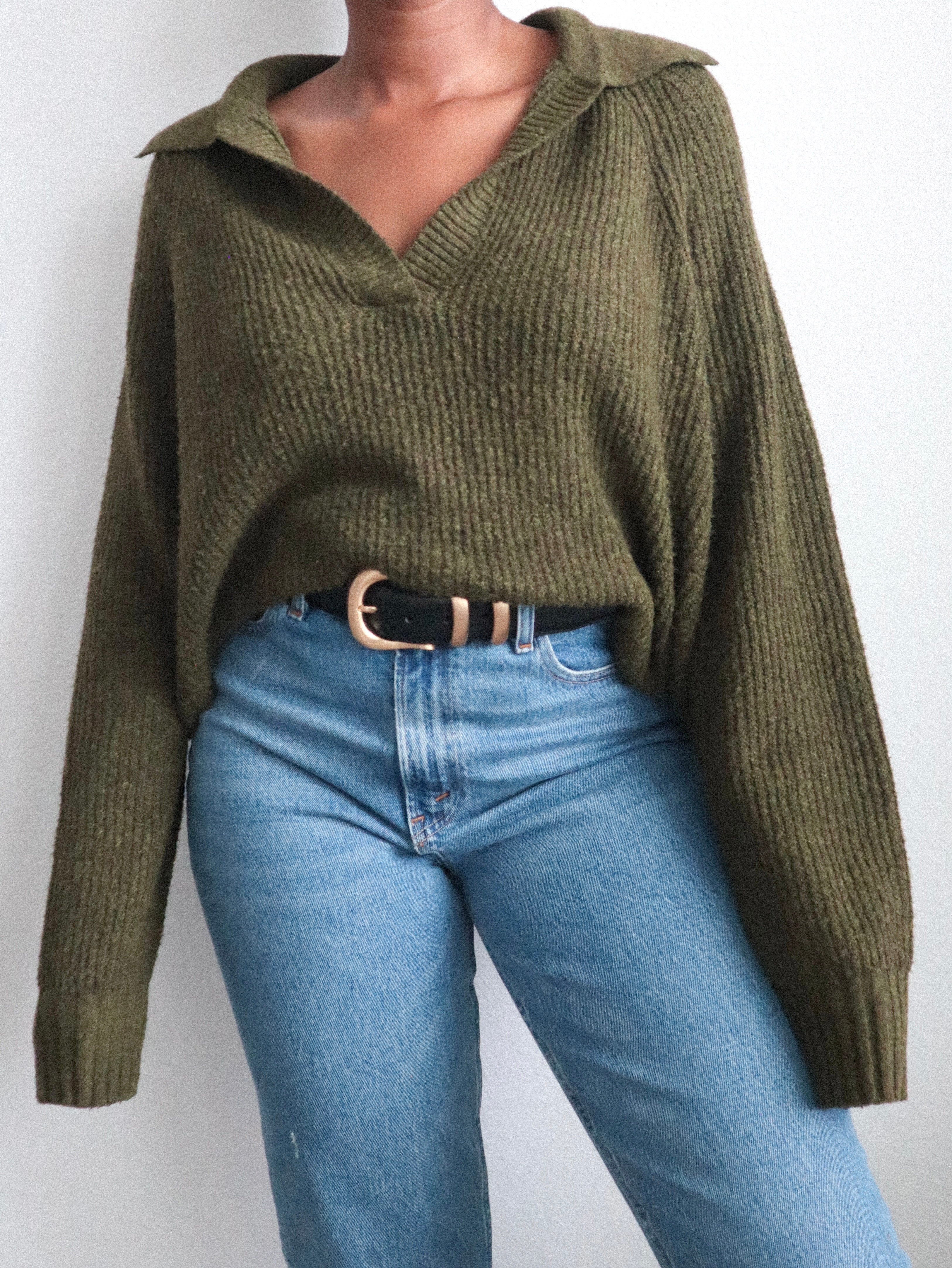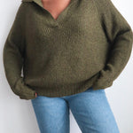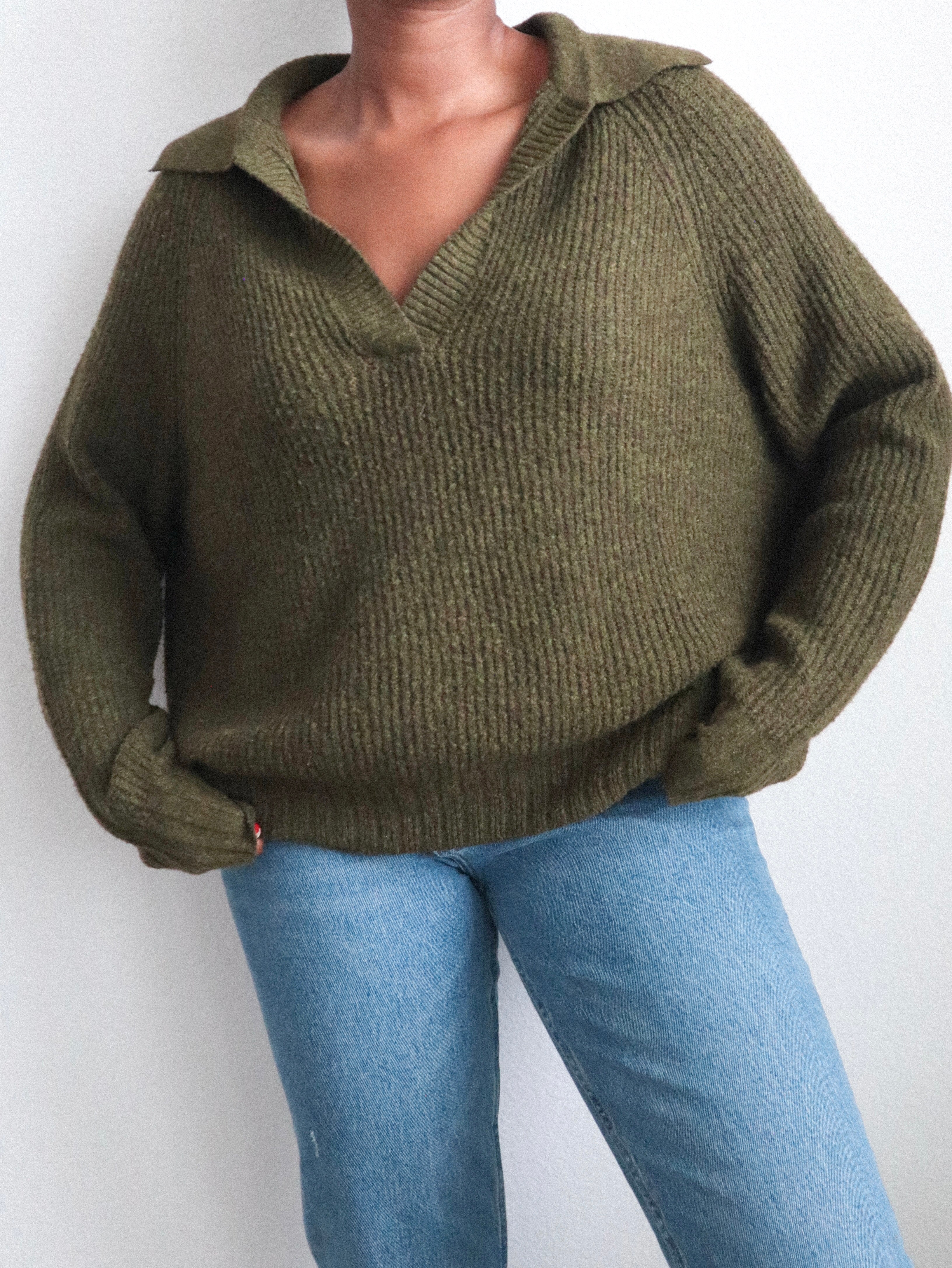 Classic pullover sweater in a rich forest green. Features a relaxed fit and ribbed hem and cuffs. A cozy, everyday essential — great for layering or wearing on its own for a casual look.